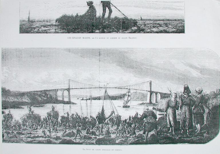 Les batelées de goémon sont jetées à la volée, à l'aide de fourches dessus les ridelles des charrettes, sous le regard des lavandières. Puis les sloops avec leur mât de flèche passent sous l'ancien pont de Lézardrieux entre les accores balisées par la tourelle rouge de l'Armor et la tourelle noire de Min Kéraoul en Goëlo, pour venir saluer à quelques milles en amont, le château médiéval de la Roche-Jagu et se ravitailler à sa source d'eau pure.
