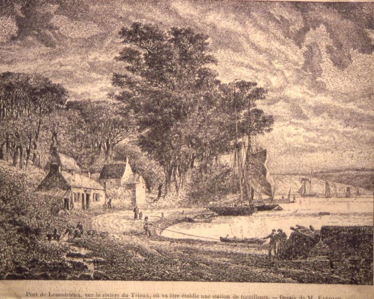 A sept milles nautiques de l'entrée du Trieux (douze kilomètres) et du port de pêche homardier de Loguivy de la Mer, les navires à destination de Pontrieux s'allègent s'il y a lieu dans le petit port de Lézardrieux à l'abri de tous les vents. Les mâts de hune rivalisent de tirant d'air à hauteur des maisons d'armateurs, en amont du four à chaux. La géométrie du fleuve s'arrondit où l'estuaire finit sa course entre le vert et le bleu.Les premiers aménagements du port de Lézardrieux dont le grand quai, permettent aux navires d'amortir plusieurs jours. C'est le mât de charge du caboteur, qui tient la gîte avec son cartahu.