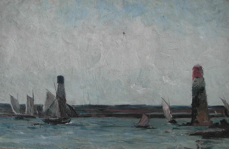 L'estime du peintre aligne les couleurs pour ajuster le point du navigateur. Le balisage singulier et monumental de l'estuaire, aux couleurs inversées par rapport à aujourd'hui (système de signalisation en vigueur avant 1924), traduit tout l'intérêt de cet aber de Bretagne nord pour des stratégies militaires avortées (projet de port militaire), dont les formes plastiques et colorées ont su séduire le romantisme de ces artistes marins.