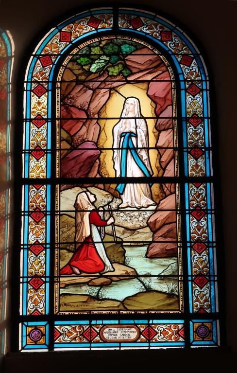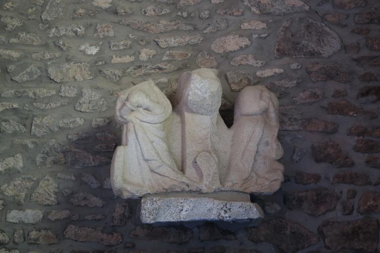 Un fragment de calvaire et quelques pierres tombales anciennes sont utilisées en pavement de sol, à l’entrée de l’église.