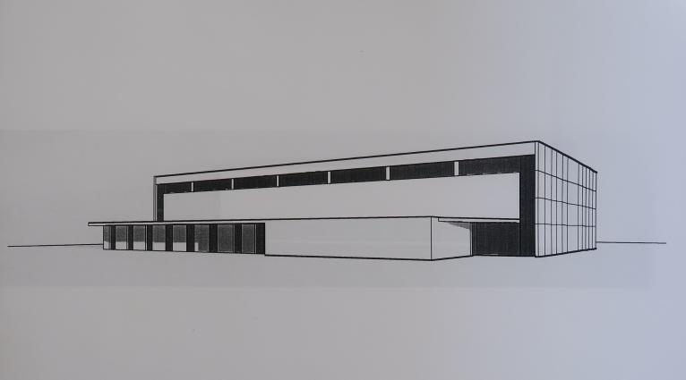 - Les annexes, d’une hauteur de trois mètres environ, forment un premier plan côté est, devant le gymnase sur sa façade d’arrivée. Une touche claire marquera ce rez-de-chaussée aux volumes plus découpés avec ses auvents marquant les différentes entrées.