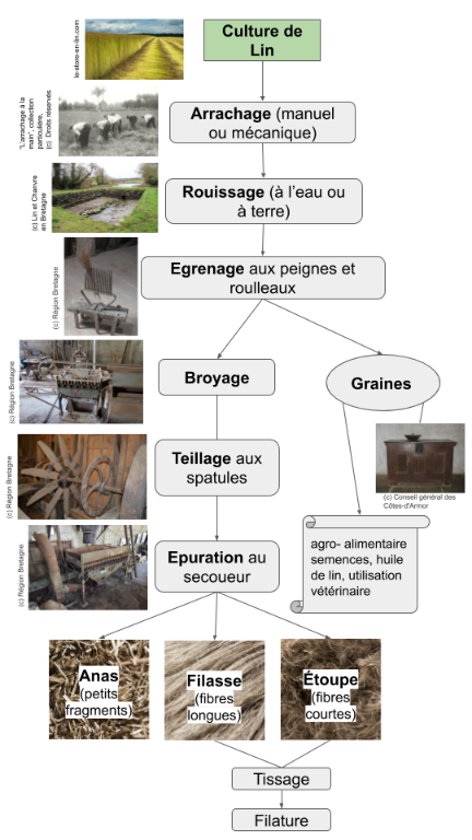 Le développement linicole commence dans le Trégor dès le 15e siècle. Les facteurs humains et matériels expliquant un développement particulier dans le Trégor sont multiples : les sols enrichis par des amendements marins (goémon et maërl) et le climat humide favorisent la croissance du lin, le rouissage, et le blanchiment des fils.