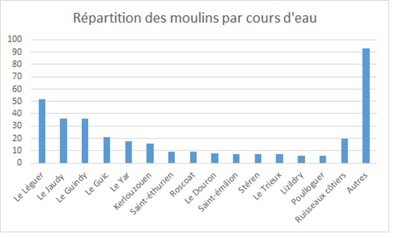 Cette étude s’est longuement penchée sur les moulins à eau de par leur forte densité dans le Trégor, mais aussi pour leur intérêt géographique. Les moulins à eau traduisent l’aménagement des fonds de vallée à des fins énergétiques. Ce sont des héritages paysagers qui sont aujourd’hui au cœur d’un processus de résidentialisation et de patrimonialisation des vallées. D’une part des moulins transformés en maison, en gite, d’autre part des restaurations d’ouvrages hydrauliques.