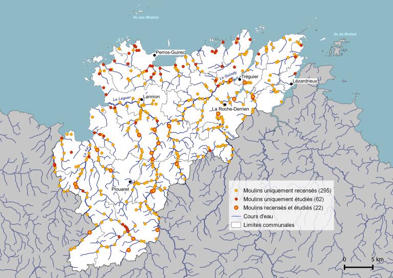 Cette étude thématique sur les moulins s’inscrit dans le cadre d’une étude plus large à l’échelle du territoire du Schéma de cohérence Territoriale du Trégor, débutée en juillet 2009. Au 1er janvier 2019, 56 communes sur 60 sont désormais étudiées ; 21 l’ayant été dans le cadre d’un inventaire préliminaire réalisé par le Conseil Départemental des Côtes d'Armor entre 2003 et 2009. Depuis 2019, l’opération se poursuit en partenariat avec Lannion-Trégor Communauté, dans le cadre d’une aide attribuée en regard de l’engagement de la collectivité dans une démarche de candidature à la labellisation Pays d’Art et d’Histoire.