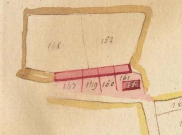 Cet ancien alignement composé de quatre logis sur le cadastre de 1809 a été modifié au cours du temps. Comme cela se pratique ailleurs, il évolue en fonction des usages et des besoins des familles. Il se distingue par son logis à deux étages reconstruit sur une partie ancienne. Un nouveau logis est accolé vers l’ouest et porte la date de 1866 et une croix de bénédiction.