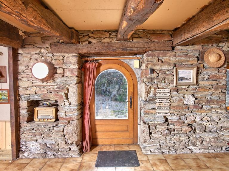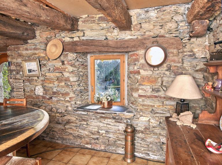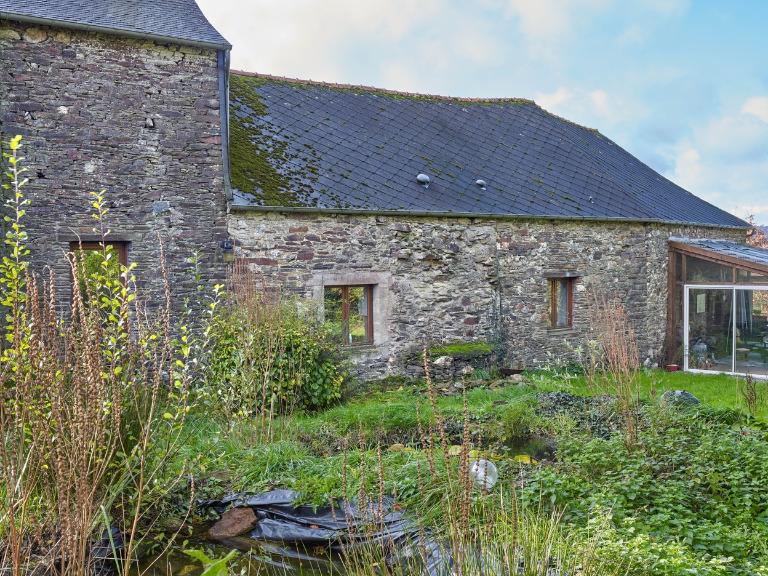 Les deux logis sont construits en alignement et en retrait de la route, au cœur de l’écart qui est implanté contre le flanc d’une butte. La cour est bordée à l’ouest et au sud par plusieurs dépendances. Le logis principal présente un plan presque massé, à étage. La façade présente une mise en œuvre en moellons de schiste soigneusement équarris, une porte à double cintre et une corniche à modillons en granite. La pièce à feu de l’étage est desservie par un escalier en vis en demi hors-œuvre. Le logis secondaire, de plan plus allongé, possède également une porte à double cintre. Sur le mur arrière, on distingue les vestiges d'un escalier en demi hors-œuvre qui desservait le comble à surcroît. Plusieurs dépendances ferment la cour à l’ouest et au sud.