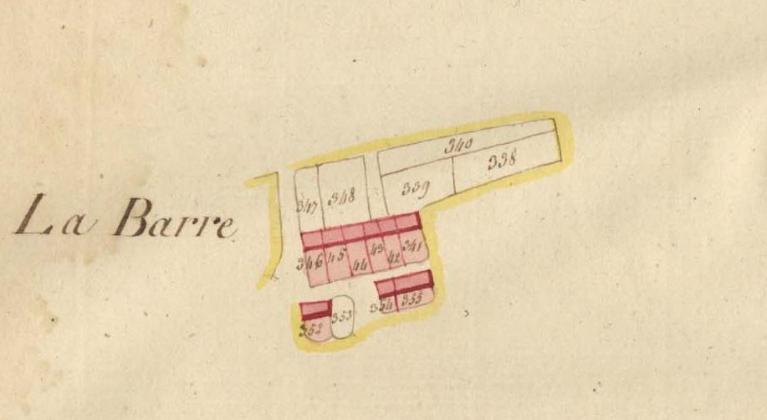 Le relevé du cadastre de 1809 rend compte d’un alignement composé de six parcelles bâties appartenant à des propriétaires différents. Il s’agit de petites fermes, à une seule pièce d’habitation. Celle-ci est mitoyenne d’une étable et le tout est surmonté d’un vaste grenier accessible par des portes hautes. En bout de l’alignement la maison de Jean Colas se distingue avec un étage de chambres qui ont été aménagées progressivement. Les linteaux en arc segmentaires étant ceux de la maison originelle. Un bandeau à la chaux souligne la partie haute de la façade, selon la mode nouvelle.