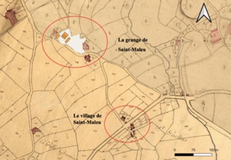 Archives composées de baux à ferme, aveux, et contrats d'arrentement qui fournissent de nombreuses informations topographiques et architecturales sur la grange de Saint-Maleu.