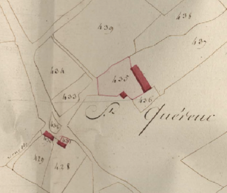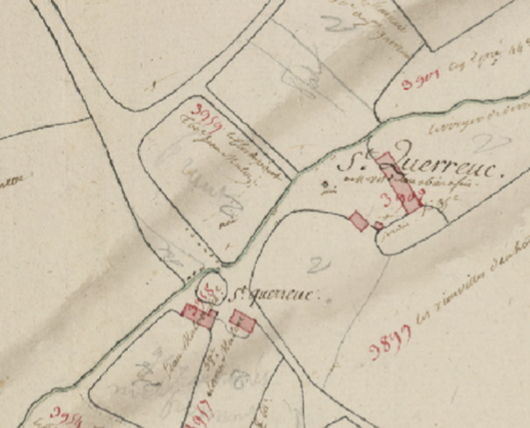 Une parcelle de "l'église" indique l'emplacement de l'ancienne chapelle de Saint-Quéreuc. La chapelle est en ruine au 16e siècle.