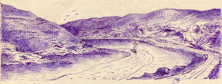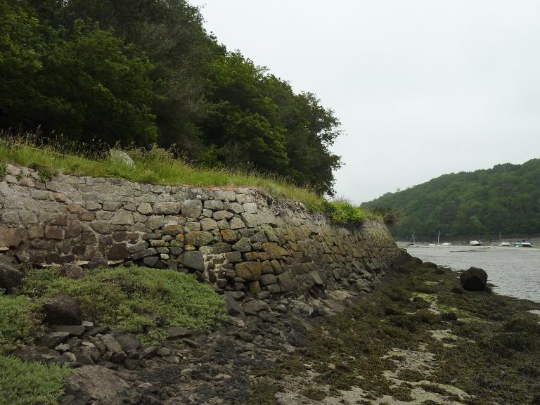 En 1875 le chantier s’arrête lorsque les ouvriers rencontrent une masse rocheuse granitique rendant le travail plus difficile et plus onéreux que le tracé dans le schiste rencontré jusqu’alors. Il aura fallu 50 ans pour consolider 5 km de halage. Entre l’extrémité du chemin et l’embouchure, des bouées de touage (bouées et chaines de traction des bateaux) sont installées en 1899 sur environ 800m.