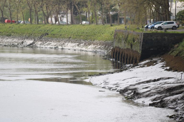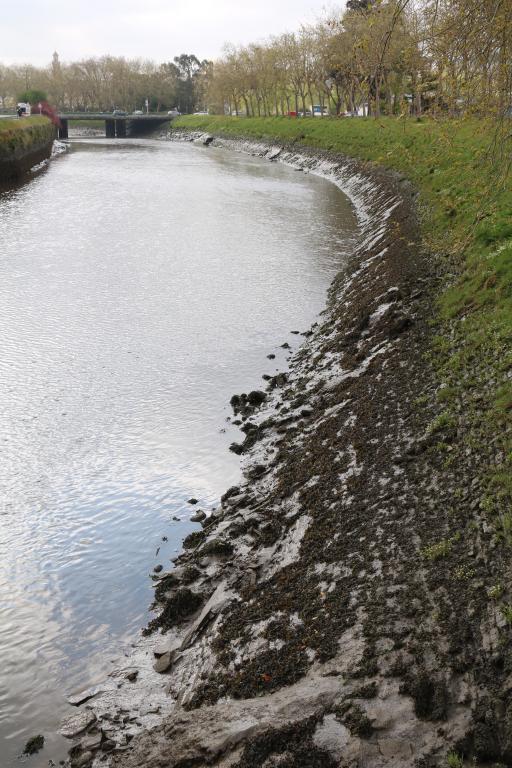Une allée d'arbres borde la rivière le long de la voie de circulation. La levée de terre formant le quai du Maréchal Foch se termine à environ 200 m après le quai vertical. Quelques corps-morts sont disposés dans le lit de la rivière à cet endroit.