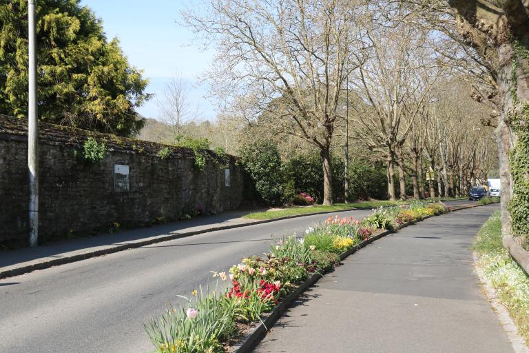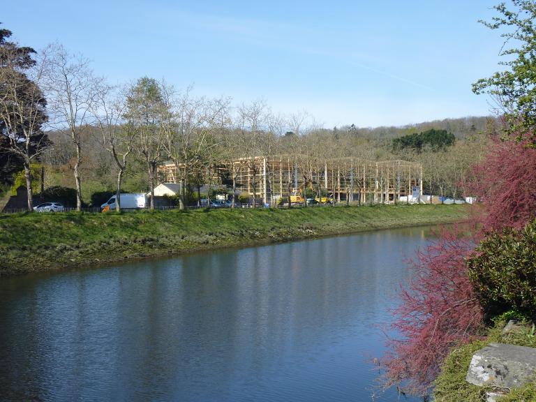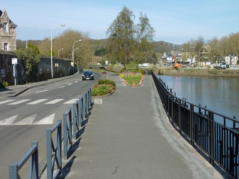 Du côté gauche du quai, la voie est bordée par le mur d'enceinte (pierres de schiste de Lannion) du monastère et du parc Sainte-Anne. Un trottoir longe le mur de Sainte-Anne, il se prolonge par un chemin piétonnier jusqu'au rond-point de Nod Huel. Côté rivière, la voie de circulation automobile est bordée par un chemin réservé aux déplacements doux (cyclistes, piétons), avec une rangée de platanes dans sa seconde partie jusqu'au pont de Viarmes. Près du pont Sainte-Anne, à l'emplacement de l'ancien quai, un mur vertical en béton a remplacé l'ancien quai de pierres sur environ 90 m ; au-delà, le quai retrouve sa nature d'origine en pierres sur une cinquantaine de mètres. Plus près du pont de Viarmes, face au confluent du Stanco, on observe un amoncellement de pierres correspondant à l'ancrage de l'ancien pont Bailey construit en 1971 dans l'attente de la construction du pont de Viarmes.