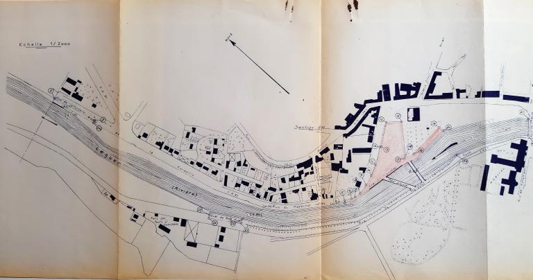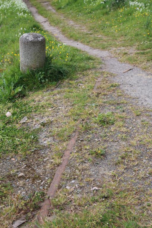 Un rail est encore visible, vestige de l'ancienne voie ferrée qui reliait ce quai à la gare.
