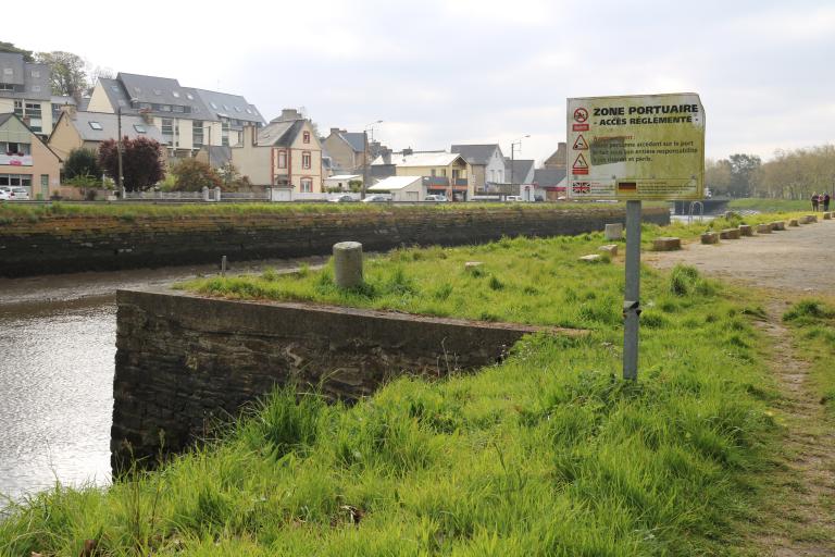 Environ 300 m en aval du pont de Viarmes, un quai vertical de 70 m de long, en béton et pierres de schiste de Lannion, se raccorde à la digue en pierres de Lannion dont les pentes sont obliques. Le quai droit repose sur des arches de soutènement, sa hauteur est d'environ 5 à 6 m. Ce quai droit permet le stationnement de bateaux de pêcheurs de Locquémeau en période de tempête ou aux grandes marées.
