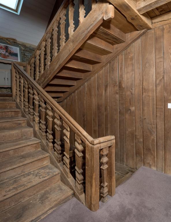 Réparties dans le bourg et la campagne, les neuf maisons à étage du 17e siècle semblent liées au commerce de la toile, sans qu'il soit possible, en l'absence de sources, de l'affirmer avec certitude. A cette époque, la frontière est encore poreuse entre activité agricole et commerce de la toile. Beaucoup de marchands de toiles sont aussi des paysans. Une enquête menée en 1649 sur les terres des Rohan apporte un éclairage très intéressant sur certaines de ces maisons. On y apprend que plusieurs domaniers ont fait construire leurs maisons contre l'usement de Rohan, qui régit localement le domaine congéable (contrat agricole propre à la Base-Bretagne). Les clauses de cet usement (usages locaux) précisent que le domanier doit reconstruire à l'identique, “sans somptuosité” sur un bâtiment préexistant. Vingt-quatre maisons dérogent à ce règlement à Saint-Thélo. Parmi ces 24 constructions, Jean Martin en a identifié cinq lors de ses recherches sur les toiles bretagnes. La maison de Coëtqueff datée 1642 fait partie de ce corpus, tout comme la maison de Kerpriat et deux maisons de la Ville-au-Breil (maison de marchand de toile, maison de marchand de toile). Ces quatre édifices sont caractérisés par un plan massé (ou peu développé en longueur), à étage, chambre haute à feu (avec cheminée) et escalier en vis en œuvre ou en demi hors-œuvre. Ils présentent des fenêtres avec des pierres d’encadrements en granite et des portes à double cintre. Une cinquième maison à Rozan, datée 1621, est relevée dans cette enquête. Elle est d’un type différent, dit logis à fonctions multiples, abritant sous le même toit bêtes, hommes et récolte (décrite comme faisant 50 pieds de long, couverte d'ardoise avec deux portes et trois fenêtres). Trois autres maisons de ce type du 17e siècle ont été recensées à La Ville-au-Galle (ancienne ferme, ancienne ferme) et à L’Abbaye sans qu’il soit possible d’établir aujourd’hui un lien avec une activité toilière.