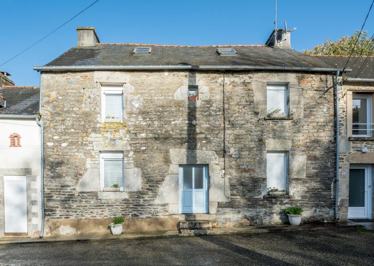 Cette probable maison de marchand de toile est un exemple d'architecture de transition de la fin du 17e siècle qui annonce les modèles à façades régulières du siècle suivant, et dont un autre exemple existe dans le bourg.