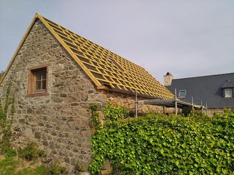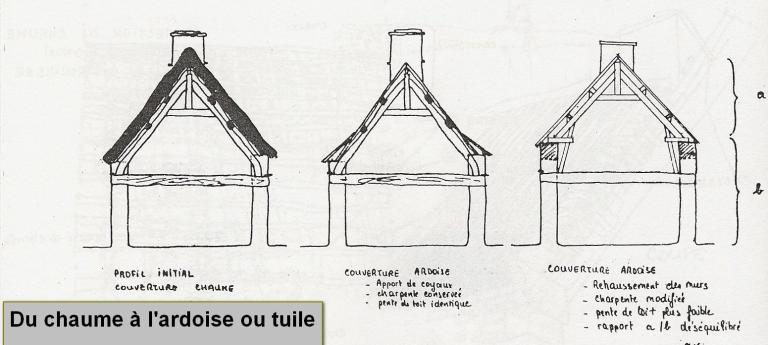 Les tuiles à lucarne dont le centre est évidé en prévision de la pose d’un carré de verre sont excessivement rares en Bretagne. Elles permettent d’apporter un peu de lumière dans les combles. L’enquête de terrain n’a révélé que deux toitures affichant cette particularité.