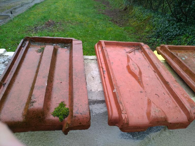 L’enquête de terrain a permis de relever certaines tuiles qui n’entrent pas dans les schémas habituels. Les premières sont les faîtières. La grande majorité des bâtiments couverts de tuiles anglaises ont des faîtières de fabrication française. Toutefois il est possible de trouver des faîtières provenant de Bridgwater. Celles-ci ne sont généralement pas à recouvrement et sont fixées au toit par du ciment.