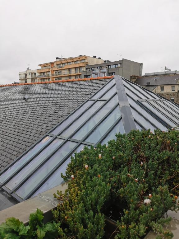 Les matériaux autorisés sont le granit et le béton. Une partie de l'immeuble sur l'angle est couvert d'une toiture terrasse, la partie arrière est couverte d'une toiture en ardoises et verres (ancienne salle de cinéma).