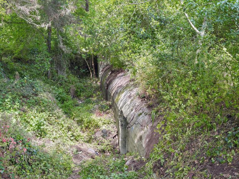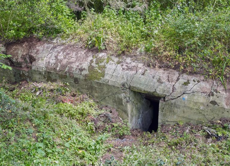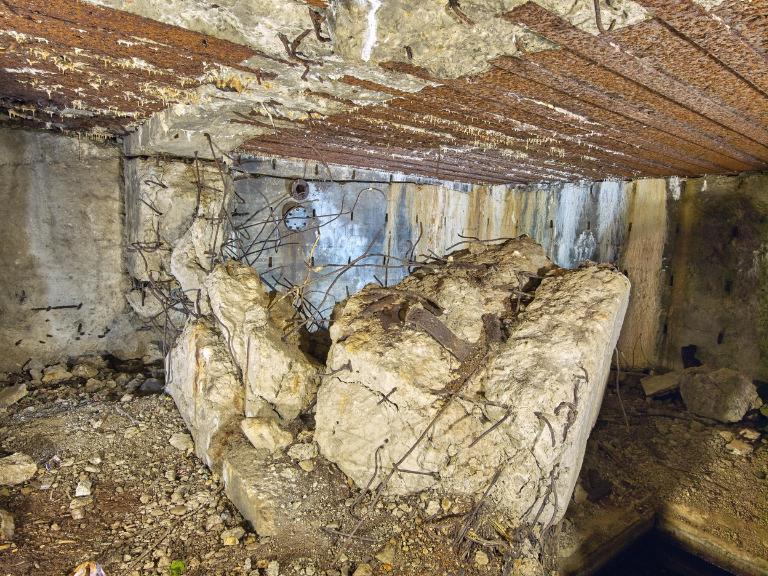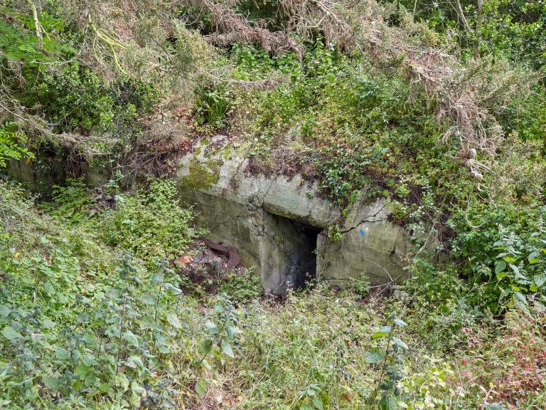L’intérêt de ce bunker en béton armé réside dans son état de conservation particulier : il a en effet subi une violente explosion interne qui l’a complétement bouleversé. A l’extérieur, un arbre pousse ainsi dans l’une des fissures du béton. Sa valorisation passerait par le déblaiement de la tranchée d’accès d’origine, l’évacuation des parpaings qui murent partiellement les ouvertures (ainsi que l’accès du Tobruk accolé) et la pose de grilles adaptées aux passages des chauves-souris qui ont colonisé le lieu.