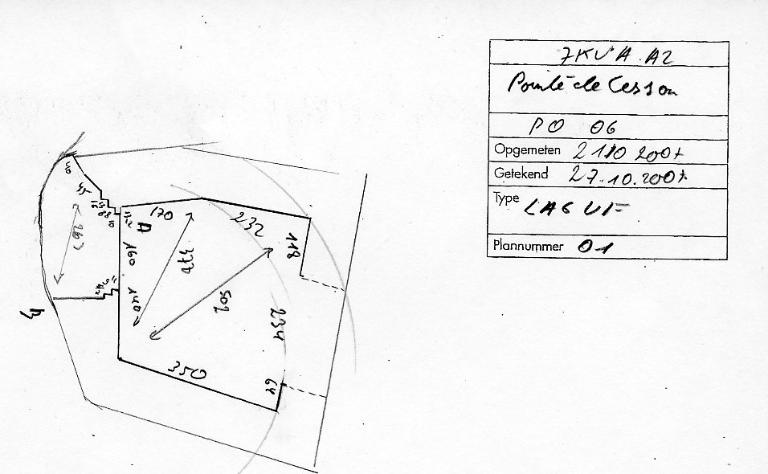 Cet édifice n’est pas cadastré. En raison de l’absence de référentiel planimétrique et de la végétation qui le masque en vue aérienne, il est simplement géoréférencé à l’échelle de la parcelle.