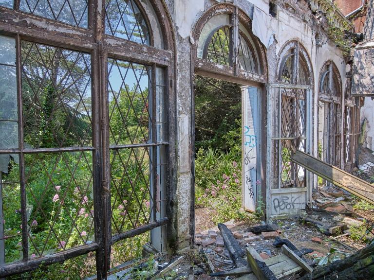 Une clôture de chantier interdit l’accès à la demeure. La végétation a repris ses droits, tant à l’extérieur avec de vigne vierge qui recouvre une partie des façades, qu’à l’intérieur de la demeure avec des Buddleia de David (appelé plus communément "l'arbre à papillons").