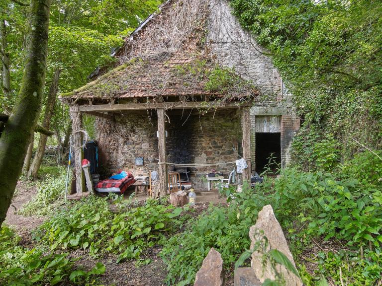 On peut vraisemblablement également lui attribuer la création du jardin et du parc (Le belvédère de jardin, compte tenu de son nom de "Tour Malakoff", est plutôt à attribuer à son oncle Glais-Bizouin (1800-1877), mais la présence d’un crénelage néo-gothique pose question.). Nous sommes également tentés d'attribuer le remaniement de la ferme dans le style néo-gothique, les communs et dépendances (la grange) à Eustache Ollitrault-Dureste, mais faute de sources archivistiques - il s’agit d’une analyse stylistique - l’attribution reste hypothétique.