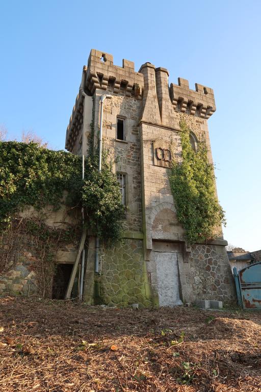 En 1877, alors qu’il est âgé de 43 ans, Eustache Ollitrault-Dureste hérite de son oncle le Domaine de la Tour de Cesson. Outre la transformation de la demeure dans un style néo-gothique (deuxième état), Eustache Ollitrault-Dureste fait édifier la conciergerie (qu’il signe de ses initiales sur l’ancre de façade) et le portail monumental. Si le tunnel ferroviaire au débouché de style néo-gothique qui passe sous le domaine est daté de 1885 par millésime, on est tenté de réduire la chronologie des travaux de la conciergerie et du portail monumental aux années 1877-1885.