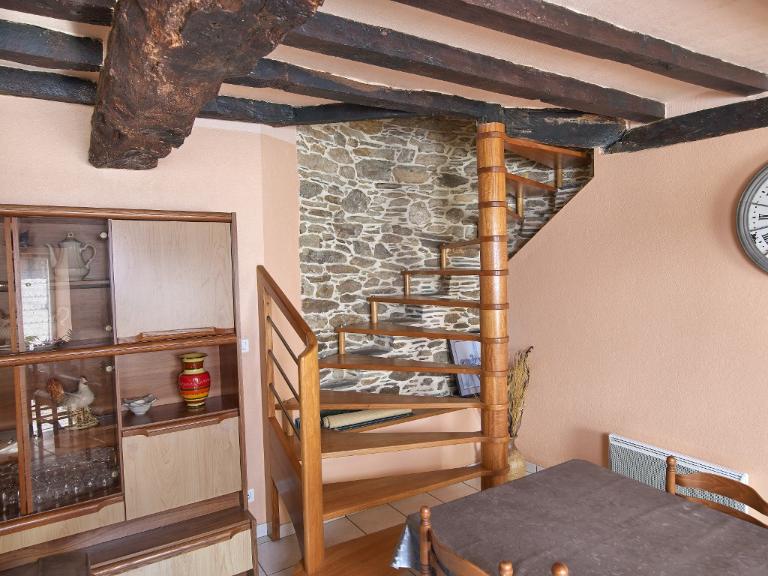 Alignement formé de deux logis à étage construits en moellon de schiste. Le logis principal est du type dit à fonctions multiples, il regroupe sous le même toit des fonctions d'habitation et des fonctions agricoles, séparées par un mur de refend. La partie habitation comprend une salle surmontée d'une chambre, desservie à l'origine par escalier en vis, comme l'indique le renfoncement arrondi dans l'angle nord-ouest de la salle. La partie agricole est composée d'une étable surmontée d'un haut comble à surcroît à usage de grenier. Chaque partie dispose d'un accès indépendant. Un portail en bois fermait à l'origine l'entrée de la cour à l'est.