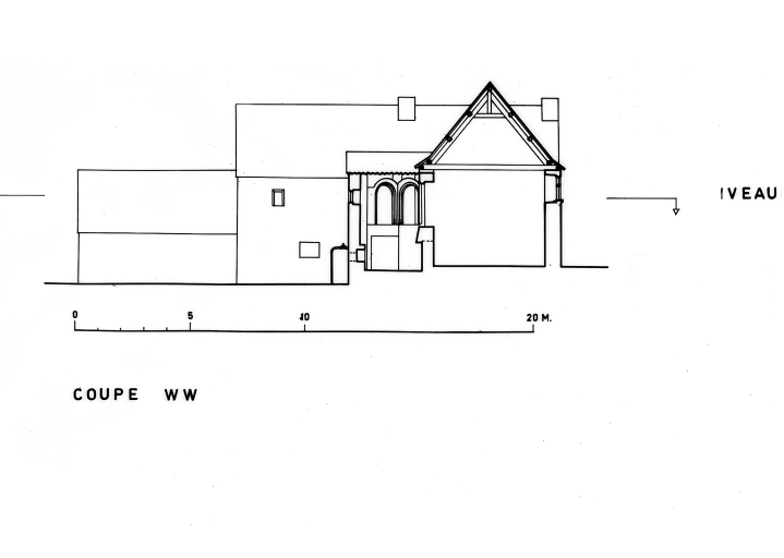 Partie inférieure de l'escalier en pierre, partie supérieure en bois. Partie haute de la tour d'escalier arrasée.
