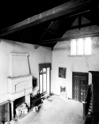 Logis enduit, encadrement des baies majoritairement en kersantite, par endroits en granite. Pavillon d'entrée en briques et kersantite couvert d'un toit en zinc. Ferme en moellon de schiste. Ecuries et remises en pan de bois et enduit. Escalier intérieur en bois. Hall anglais avec tribune en bois reposant sur des colonnes en granite poli.