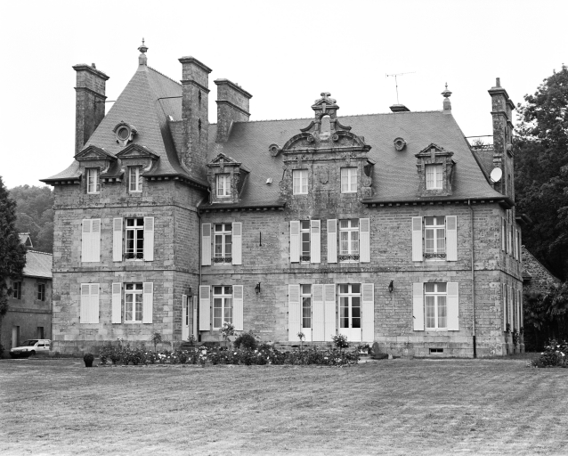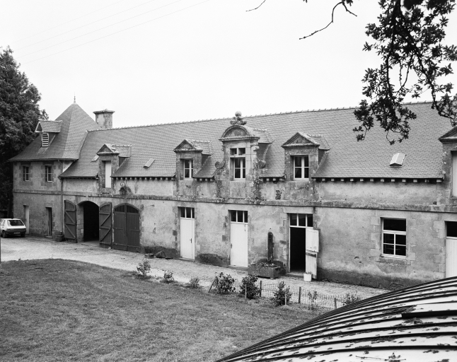 Logis avec sous sol, un étage carré et comble à surcroît ; écuries, sellerie et remise à voitures en rez-de-chaussée et combles à surcroît flanqué d'un pavillon avec logement à un étage carré. Logis en pierre de taille de granite de Locronan, communs en moellon enduit. Escalier en bois.