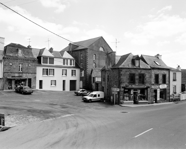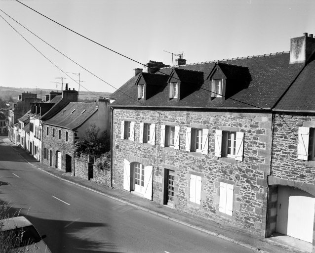 Liés à la structure parcellaire, on peut distinguer deux types d´emprise au sol. Pour les maisons construites sur des « parcelles étroites » issues de la première occupation des terrains, la faible largeur sur rue est compensée par une profondeur marquée ; c´est le cas pour la majorité des maisons du Faou. Les « parcelles larges » se situent à la périphérie du noyau ancien ou correspondent à un comblement tardif des vides. Dans les deux cas, les entrées se font directement à partir de la rue ou de la place, le rez-de-chaussée servant, dans la plupart des cas, de boutique avec étal. Quelques maisons d´angle disposent, en plus, d´un accès latéral - 6 et 50, rue du Général de Gaulle ou 1, place des Résistants et Fusillés.