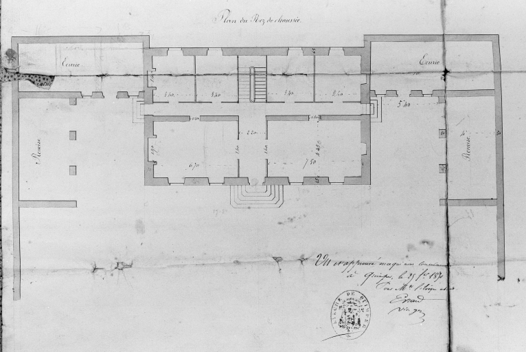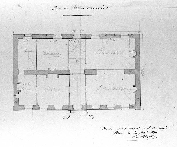 Gros oeuvre en pierre de taille de granite, encadrement des baies en kersantite. Escalier en bois.