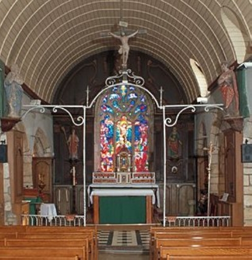 Le réseau de la baie axiale du choeur est en forme de fleur de lys. Blason fruste ou martelé sur le fronton de la porte ouest. Une croix de guerre et une couronne de laurier figurent sur le monument au morts.