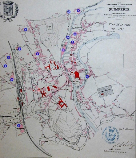 A.C. Quimperlé. Plan d´aménagement et d´embellissement de la ville de Quimperlé, 1924-1925 par M. Troalen, ingénieur des travaux publics de l´Etat.
