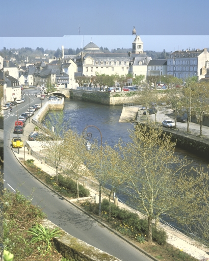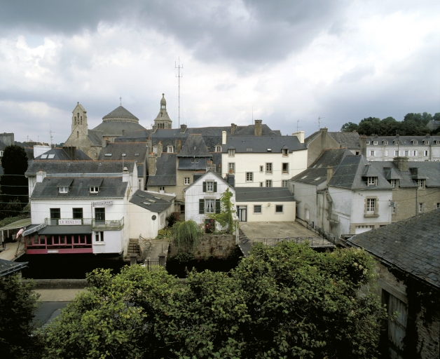 Quimperlé, - « villa Kemperelegium » au milieu du 11e siècle, « Kemperlé » en 1462, est née aux confluents des rivières de l´Ellé et de l´Isole fortement encaissées et au croisement de routes importantes, Hennebont et Port-Louis à l´est, Quimperlé au nord-ouest, Le Faouët, Carhaix et la Bretagne intérieure au nord. L´accès depuis le sud et Lorient, en passant par le faubourg du Bourgneuf, ne remonte qu´à1643, date de la construction du premier pont. Ce site stratégique favorise l´essor de la ville et du port à l´époque médiévale. L´autorité de la puissante abbaye Sainte-Croix et celle de la bourgeoisie et de la noblesse, forgent l´identité de la cité, qui est tour à tour fief ducal, châtellenie, sénéchaussée et sous-préfecture (jusqu´en 1926) et un pôle spirituel, culturel et économique majeur entre la Cornouaille et le pays de Lorient. Depuis l´époque médiévale, l´enseignement, l´artisanat, l´agriculture et l´industrie façonnent la ville et ses environs. L´essor de la basse ville dans la première moitié du 12e siècle se confond avec celui de l´abbaye Sainte-Croix à l´ombre de laquelle naissent le premier noyau urbain et la première paroisse, Saint-Colomban. L´emprise foncière de l´abbaye dont la surface correspond à la moitié de la basse ville, demeure prépondérante jusqu´au 17e siècle. L´essor de la haute ville autour de l´église paroissiale Saint-Michel et de la chapelle Notre-Dame est un peu plus tardif ; il se situe au 13e siècle et est essentiellement lié aux marchés et échanges dont témoigne la grande place des foires. Les quartiers bas cernés des deux rivières formaient « une ville close » ; un mur d´enceinte d´une circonférence d´environ 900 mètres, en place dès le 13e siècle, tombe progressivement en ruine et disparaît au milieu du 17e siècle. En suivant les cours naturels des rivières, il était percé de trois portes plus au moins fortifiées, celle du Gorrequer au nord, Lovignon (ou porte d´Ellé) à l´est et porte de Rosmadec (ou du pont Salé) à l´ouest. L´existence d´un château qui aurait existé tantôt en haute ville, près de l´actuel couvent d´ursulines (Bel Air), tantôt en basse ville, repose sur l´ambiguïté d´une interprétation qui l´identifiait à l´ancien logis du gouverneur de la ville ; cette demeure cossue du 17e siècle situé près de la porte du Gorréquer. Le « plan d´embellissement » dressé en 1772 par l´ingénieur des Ponts et Chaussées Julien-Barthélemy David ne propose pas des bouleversements notables du tissu urbain ; les alignements préconisés, surtout dans l´actuelle rue Brémond d´Ars, ne seront que partiellement réalisés, même si un certain nombre de maisons à façades en pan de bois a disparu. Les terrains situés entre le centre de la basse ville et le faubourg nord du Gorréquer, secteur traditionnellement réservé aux bouchers, servent entre 1650 et 1780 à l´établissement d´un quartier résidentiel qui prend l´allure d´un lotissement aristocratique. La seconde moitié du 19e siècle est marquée, outre par l´agrandissement des ouvrages portuaires, par une activité architecturale importante ; initiée par le maire Alexis Savary (abattoir, marché couvert, hôpital, écoles), elle est liée à l´essor industriel de la ville et à l´agriculture florissante de l´arrière pays. Quimperlé se dote, en 1921, d´un « plan d´aménagement, d´extension et d´embellissement » mis en oeuvre à partir de 1925. L´importance de ce projet d´urbanisme réside surtout dans l´amélioration des voies de circulation et la création de quatre zones de lotissements hors du centre ancien, ce qui fait évoluer la ville au-delà de sa structure héritée du passé. Avec une surface de huit hectares, le lotissement de Bel Air, projeté dès 1908 mais réalisé à la fin des années 1920, est le plus cohérent, à la fois par sa conception globale, la dimension des îlots, la mise en place d´une école et d´un terrain de sport. D´autres quartiers moins importants se développent, entre autres, à Kerneuzec, Beaubois, Ty Bordeaux et près du cimetière Saint-David. Les installations industrielles (tanneries, moulins, fonderies), dépendantes des forces hydrauliques, sont dans un premier temps regroupées dans la vallée de l´Isole ; elles disparaissent progressivement, au profit d´autres activités - conserveries, cidreries - installées à proximité de la gare, à Kergostiou, autour de Beaubois ou près de la route de Mellac. Entre 1950 et 2000, l´urbanisation s´intensifie, soit autour des lotissements existants, soit à proximité des grands axes de circulation, suite au plan d´urbanisme élaboré entre 1955 et 1966 par l´architecte et urbaniste Landelle de Lorient. La mise en place d´une ZPPAU (Zone de Protection du Patrimoine Architectural et Urbain), avec Fougères une des premières en Bretagne, intervient en 1983.