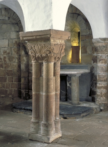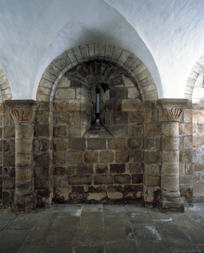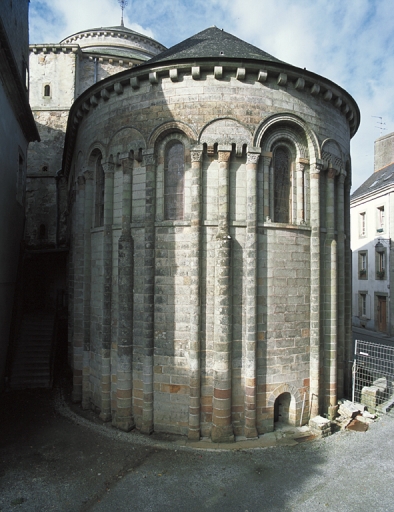 Malgré sa reconstruction presque intégrale achevée en 1868, l´église Sainte-Croix de Quimperlé demeure un témoin exceptionnel de l´architecture romane en Bretagne. Avec l´ancienne église de Lanleff (Côtes-d´Armor), certes bien plus modeste, elle est, en région, l´unique édifice religieux conçu suivant un plan centré qui se réfère, comme l´ont souligné plusieurs auteurs, au Saint-Sépulcre de Jérusalem. Remontant à l´origine du bâtiment, l´abside du chevet abritant la crypte et l´ancien choeur des moines demeure aujourd´hui l´élément le plus authentique. Les bases et les chapiteaux des colonnes de la crypte se comparent à ceux de la crypte de la cathédrale de Nantes, également construite à l'initiative de l´évêque Benoît vers 1100. Rarement figuratif, ce décor sculpté de feuillages et de rinceaux dénote aussi des parentés stylistiques avec Saint-Gildas-de-Rhuys et Redon. C´est depuis les pays de la Loire que la sculpture monumentale romane s´implante en Bretagne sud et Quimperlé en offre une magnifique illustration. La synthèse de l´édifice roman faite par André Mussat garde toute sa pertinence : "Par la hardiesse et l´étrangeté de son propos architectural, Sainte-Croix est un grand monument souvent cité par les archéologues peu attirés par la Bretagne romane. Aujourd´hui, ce n´est plus qu´une restitution archéologique approximative ; c´est assez, cependant, pour y voir un édifice exceptionnel. Église à plan central, elle présentait, dans ses dispositions d´origine, un important jeu d´espaces : la combinaison du plan central tréflé, inspiré, selon la dédicace même, de l´église de Jérusalem, avec un grand volume (17,20 m de hauteur pour la coupole nervée et 15,80 m pour les collatéraux annulaires) et une structure axiale de 49 mètres de long, à mouvement ascendant ouest-est. Oeuvre exceptionnelle, souvent comparée à d´autres tentatives du même type inspirées par le culte du Golgatha, comme Charroux en Poitou ou Neuvy-Saint-Sépulcre en Berry, elle surprend dans un milieu en pleine reconstruction, sans grande tradition architecturale, tant par la hardiesse de son plan, le traitement de l´espace et des circulations, que par la maîtrise des types de voûtement." Quant à l´ancienne tour-clocher de la fin du 17e siècle (disparue), elle rappelle certaines réalisations morbihannaises contemporaines, notamment Saint-Gildas d´Auray.