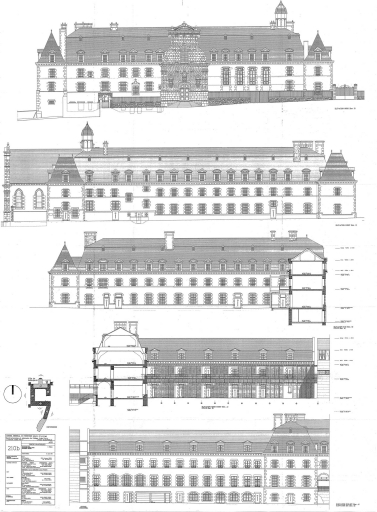 En 1652, les ursulines de Tréguier, par lettres patentes de Louis XIV, avec le consentement de l´évêque de Cornouaille, de l´abbé de Sainte-Croix et de la communauté de la ville, sont autorisées à fonder un établissement. La communauté s´installe d´abord en basse ville, dans le quartier du Gorréquer. Dans un vaste périmètre à la limite de la haute ville, Claude de Kerouartz, première supérieure, fait l´acquisition, en 1665, de la métairie de Bel Air en vue d´établir la communauté qui se destine à l´instruction et l´éducation des filles. Sous Claude de Kerouartz, le chantier, favorisé par l´apport financier de familles locales influentes (Penfeunteunyo, Lohéac), débute en 1667 (église Notre-Dame, premiers murs de clôture). En 1674 (date regravée), les bâtiments conventuels sont achevés, tout comme l´église dont l´élévation nord, modifiée plus tard, était sans doute couronnée d´un simple fronton triangulaire dont subsistent des traces sous forme d´amorce d´un pignon découvert. Le coût de cette campagne de construction aurait dépassé 60 500 livres. Dans la chapelle, le lambris de couvrement reçoit un décor peint qui sera détruit par un incendie en 1683. La nef de l´église communiquait, à l´ouest, avec le choeur des religieuses, à l´est avec une chapelle dédiée à saint Joseph. Aménagé dans un angle, un escalier en vis donnait accès à un oratoire (appelé haut choeur) qui permettait d´assister aux offices depuis les cellules de l´étage ; cette disposition figure encore sur le relevé fait par l´architecte Bigot en 1865. En 1683, un incendie ravage la totalité des parties supérieures du bâtiment nouvellement construit. Un procès verbal indique non seulement l´étendue du sinistre mais permet aussi d´entrevoir certaines caractéristiques architecturales et fonctionnelles des espaces (voir annexe 1). Une campagne de reconstruction, en grande partie à l´identique, avec reprises visibles au niveau des combles, a lieu entre 1684 et 1689 : reconstruction probable du pignon de l´église et mise en place d´un nouveau clocher à dôme (disparu) qui figure sur le dessin de Robien de 1737 ; l´ancien clocheton est ne semble pas avoir été rebâti. Entre 1688 et 1690, construction, dans le sud-est de l´enclos, de la chapelle Notre-Dame du Grand Pouvoir ; l´édifice qui figure sur le cadastre de 1825 et le plan de Troalen de 1924, a disparu au début des années 1930. Entre 1711 et 1716, mise en place d´un portail d´entrée au nord et d´une seconde clôture à l´ouest. Les travaux sont exécutés par Mathieu Mahé, maître-maçon, également actif au cloître de l´abbaye Sainte-Croix ; ces éléments figurent encore sur des photographies anciennes. En 1720, construction, pour plus de 37 000 livres, de l´aile ouest (cloître, réfectoire, dortoirs), du pavillon sud-ouest, d´un escalier et d´une courte aile en retour d'équerre à trois travées représentée sur le dessin de Robien exécuté en 1737. Entre 1733 et 1789, plusieurs parties de la ferme de Bel Air, logements, laiterie, écuries, étables et porcheries, ont été construits ou reconstruits (le logis en 1733, la buanderie en 1761, le pressoir à cidre en 1767, la boulangerie en 1789). En 1789, le domaine (bâtiments conventuels, jardins potagers, jardins d´agrément, vergers, dépendances agricoles) couvre une surface d´environ 15 hectares. Expulsion des religieuses et vente comme bien national en 1792. Retour de la congrégation et reprise de l´enseignement à partir de 1803. Le plan cadastral de 1824 reflète l´ensemble de l´emprise foncière et d´un plan-masse sans doute peu différent de l´état antérieur à la Révolution. Un petit cimetière jouxte le chœur des religieuses au nord. Les bâtiments de service sont toujours regroupés autour de la métairie de Bel Air. En 1827, réfection de la charpente et de la toiture de l´église et mise en place du lambris peint actuellement en place (voir dossier). En 1846, fermeture du cloître par des baies vitrées. En 1851, commande de 4000 tuiles en terre cuite acheminées depuis Nantes par voie maritime. En 1856, mise en place des fausses voûtes en plâtre du cloître par Brévini père, plâtrier et entrepreneur de Quimperlé. En 1865, construction de l´aile sud (cloître, réfectoire, salles de classe, dortoirs) d´après les plans de l´architecte diocésain Joseph Bigot dont le projet initial prévoyait la fermeture totale du cloître ; le granite provient de carrières de Baye et de Pont-Aven. Entre 1868-1869, travaux dans l´église : carrelage, restauration des peintures du lambris de couvrement, dorure et peinture des autels, mise en place de retables, commande de verrières auprès de l´atelier du Carmel du Mans. En 1880, agrandissement des baies du chœur des religieuses, travaux exécutés par l´entrepreneur Le Naour de Quimper. En 1888, hors du cloître, rajout d´une aile perpendiculaire au sud-est (salles de classe, dortoirs), d´après les plans du chanoine Jean-Marie Abgrall. En 1895, prolongeant l´aile est en retour d´équerre, construction d´un corps de bâtiment de quatre niveaux, de style néoclassique, d´après les plans de Jules Loire, architecte et maire de Lorient ; les travaux sont réalisés par l´entrepreneur Alphonse Gourier de Quimperlé. En 1907, suite à la loi de séparation des Églises et de l´État, départ des ursulines et installation d´une école primaire supérieure de jeunes filles. Dès 1907, un projet visant à diviser en lots les anciennes terres dépendantes de la ferme de Bel Air voit le jour, base d´un nouveau quartier à proximité de la gare et de la place Saint-Michel. Mais ce n´est qu´après 1920, suite à la démolition de la ferme de Bel Air et à la mise en place d´un réseau de voies desservant le futur quartier résidentiel, que le domaine est progressivement loti et proposé à la vente. Entre 1925 et 1935, le secteur est urban
