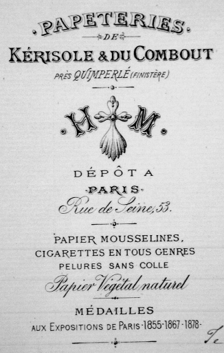Acquisition du moulin du Combout par Henry de Mauduit. La fabrication du papier se poursuit sur les deux sites : blanchiment, raffinage et façonnage à Kerisole, usine de pâte à papier au Combout.