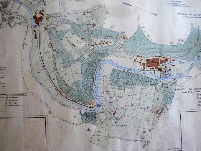 Plan général des papeteries de Mauduit levé par Troalen, ingénieur des travaux publics. Indications précises sur la topographie et la fonction des différents espaces et bâtiments, avant les transformations contemporaines.