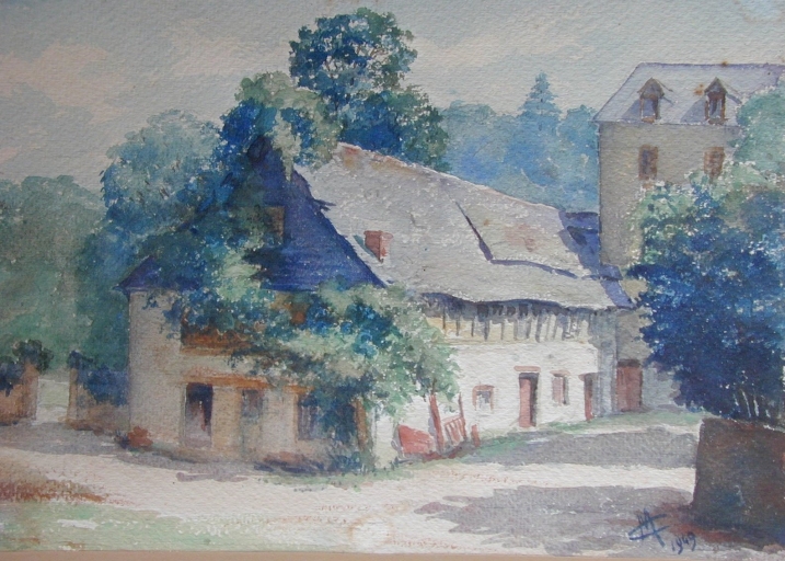 Logis à 2 étages carrés et toit à longs pans brisés, minoterie à 3 étages carrés. Les cartes postales anciennes (vers 1890) et la vignette figurant sur l'en-tête en 1913 montrent la succession des transformations.