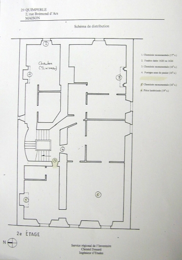 Typologieslogis à mur pignon sur rue, en profondeur. Logis à double orientation. Logis à quatre pièces par étage. Tour d'escalier latérale. Cheminée sur gouttereau. Pièce sous charpente. Vaisselier mural. Charpente à chevron portant ferme