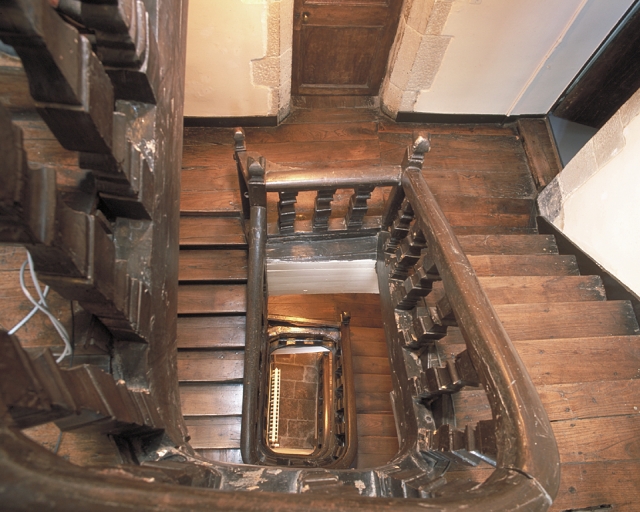 L'élévation en pan de bois sur rue a été remplacée par une façade à trois travées en moellon enduit, avec encadrement des baies en granite. Certaines ouvertures en calcaire de l'élévation postérieure datent du 17e siècle. Charpente à chevron portant ferme et poinçons moulurés partiellement d'origine. Un pigeonnier a été aménagé dans la partie supérieure de la cage d'escalier.
