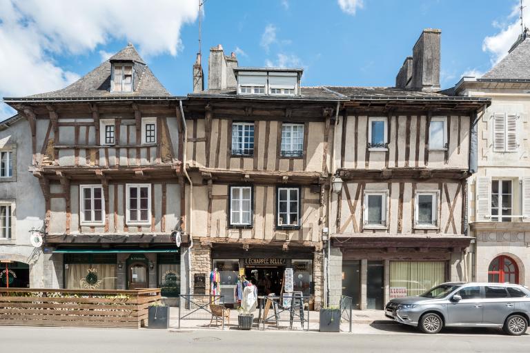 Cette maison à rive sur rue présente une façade d'un peu plus de cinq mètres de large en encorbellement sur solives (cf. Annexe - Diagnostic sanitaire). Les remaniements du rez-de-chaussée commercial ont conduit à la suppression des poteaux qui soutenaient la sablière et la disparition des trois travées dont une grande et deux petites. L'escalier en vis d'origine a disparu mais on devine sa trace dans la cave par un arrondi du mur mitoyen nord, à peu près au milieu du bâtiment. Le mur mitoyen sud inclus deux cheminées au rez-de-chaussée, dont l'une ne conserve qu'un piédroit. Du côté nord, le mur comporte un vaisselier (rez-de-chaussée) et deux cheminées (2e étage).