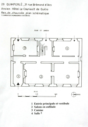 Bien que privée de son environnement et de ses lucarnes d´origine, cette résidence urbaine d´inspiration néoclassique bâtie peu avant 1789 est l´oeuvre d´un architecte confirmé, sans aucun doute familier des réalisations versaillaises et parisiennes. Les élévations se distinguent par des traitements architecturaux très différents : la simplicité des pignons et de l'élévation donnant sur les anciens jardins contraste avec l'ostentation, sobre mais omniprésente, de l´élévation principale. Les distributions, le traitement monumental de l´élévation sur rue (chaînes d´angle, entablement à ressauts, baies moulurées à clés saillantes dont certaines sont demeurées sans décor sculpté), tout comme l´aménagement intérieur (rampe d´escalier, lambris, cheminées) en font un exemple isolé mais remarquable parmi les hôtels particuliers construits à la fin du 18e siècle dans le sud de la Cornouaille et autour de Lorient.