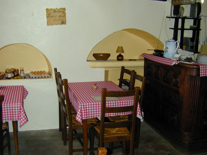 A l'intérieur, le rez-de-chaussée comporte un vaisselier et deux niches dans le gouttereau est ainsi qu'un placard, une petite baie et une cheminée du 16e-17e siècle dans le mur ouest, dont le conduit maçonné forme une très haute souche en extérieur afin de dépasser le faîtage. L'accès à l'étage se trouvait initialement dans le coin sud-est ; le noyau en chêne d'une section de 14 cm de l'ancien escalier ainsi qu'une marche sont encore identifiables.