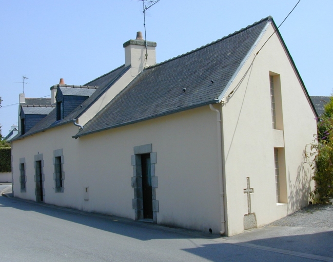 Cette petite croix, vraisemblablement du 17e siècle, a été remployée dans la partie inférieure du pignon d'une maison non étudiée. On n'en trouve aucune trace sur le cadastre de 1824. Il s'agit probablement d'un élément qui provient d'un ensemble connu sous l'appellation "les cinq croix", elle-même à l'origine du nom de ce quartier qui prolonge l'ancien faubourg de Lovignon situé à la sortie est de la ville, sur l'ancienne route de Vannes.