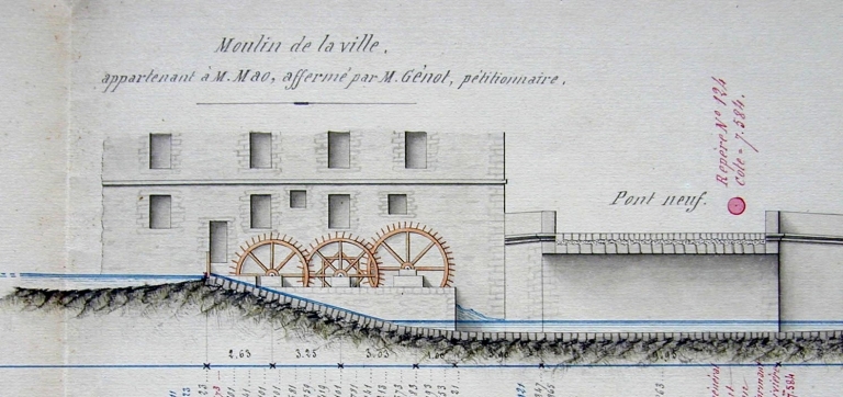 A.D. Finistère, 7 S 39-40. Moulin de la ville (1827, 1863).