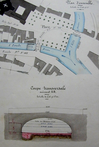 A.D.Finistère, 2 S 178. Pont de l´Isole. Plan et coupes par Duperrier, 1895.